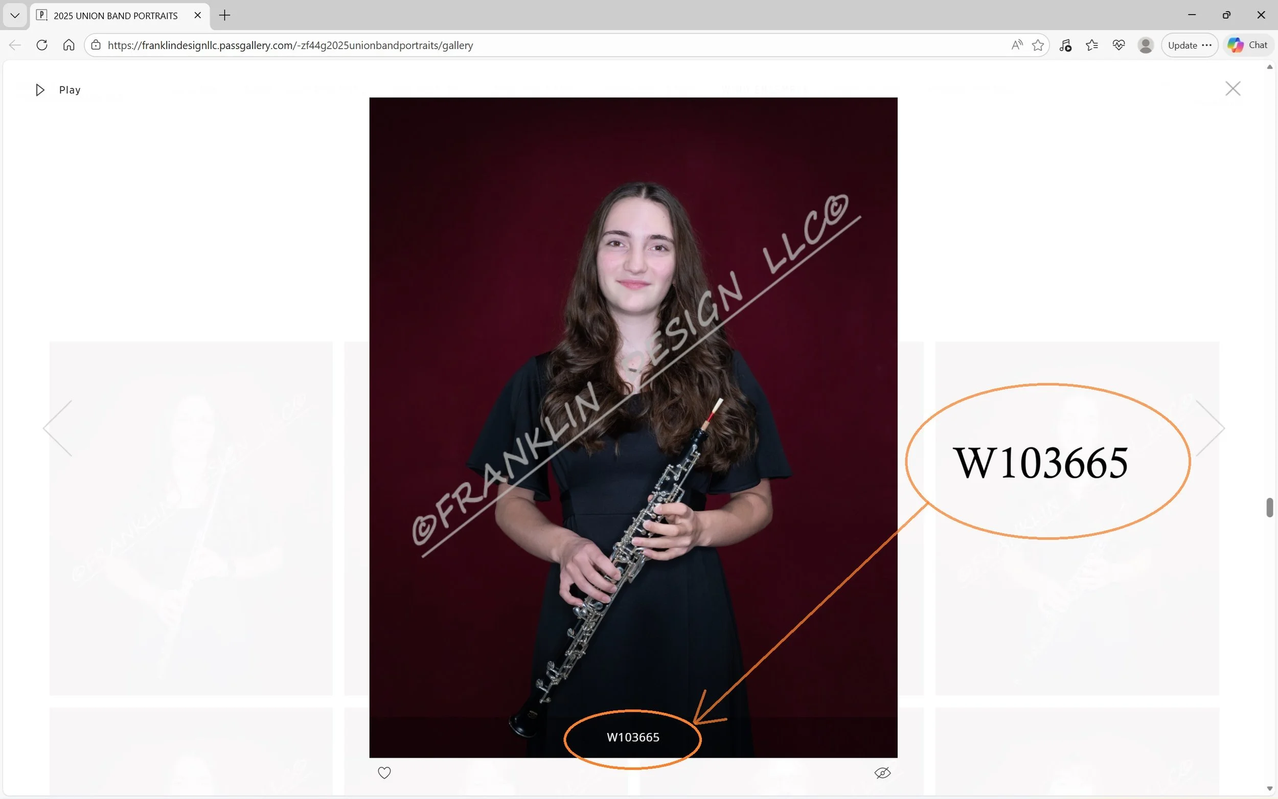 Once you find a portrait that you would like to select, click on it to make it full sized and hover the curser over the image. The image number will be displayed near the bottom of the page in smaller gray characters. Please record the image numbers that you want to order and return to this website to select your package and complete your order form.